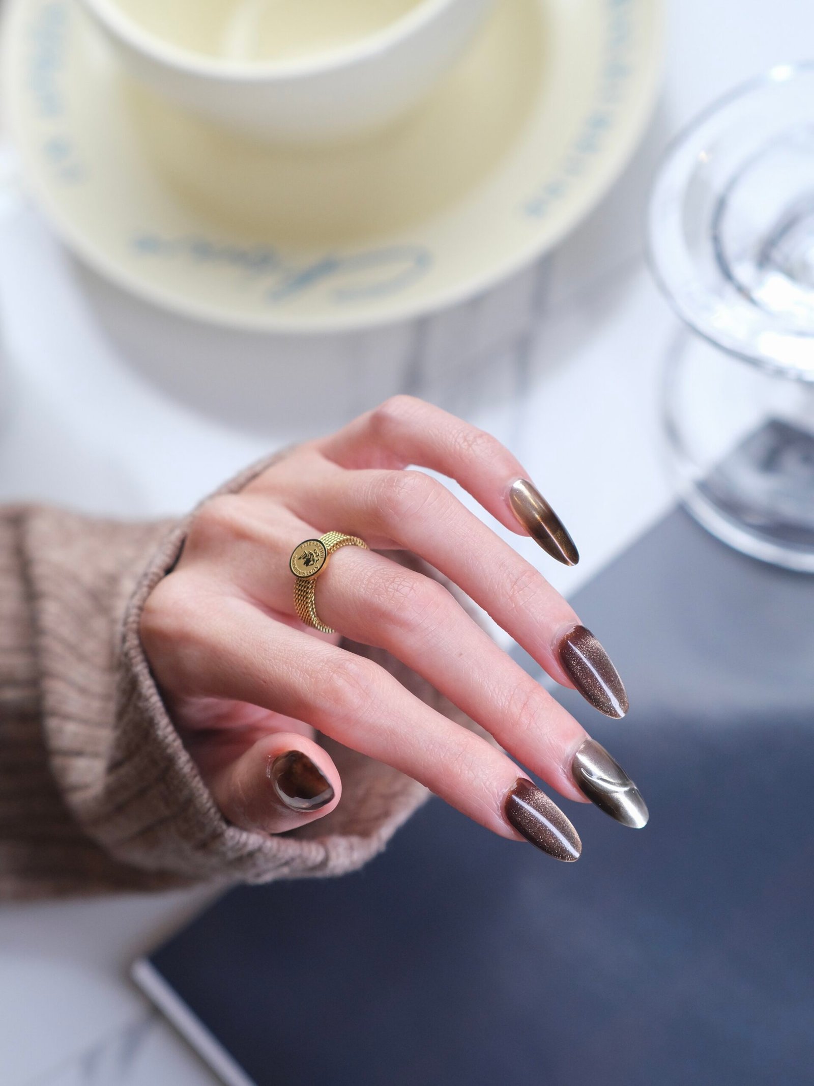 - Workwear:Pair with a deep coffee-brown suit. The warm brown tones echo effortlessly, while the subtle gold shimmer becomes a quiet highlight at the meeting table.